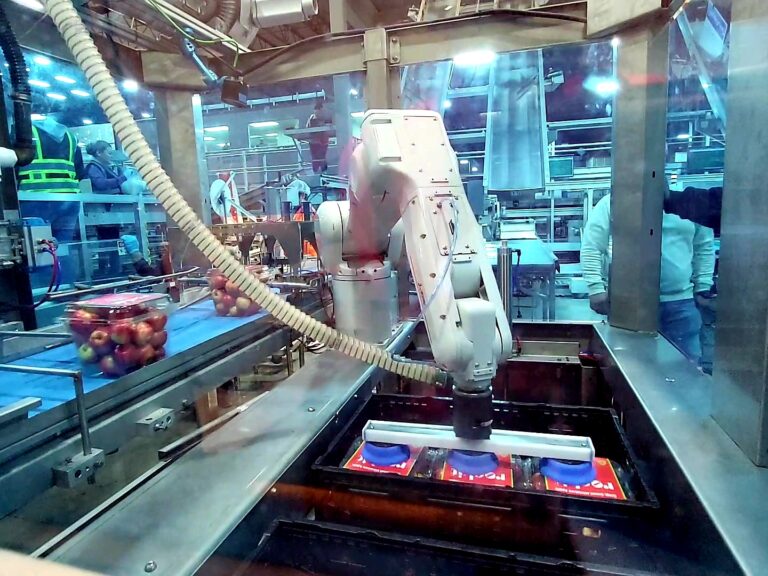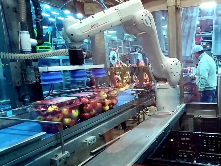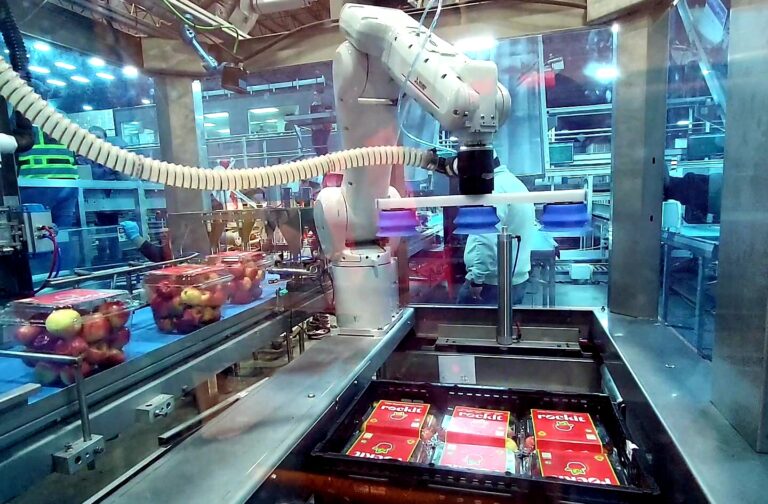Their recent take on robotic technology in the fresh produce industry is a robotic case packer solution for packing tubs of apples into either cardboard or plastic crates. The design of the solution provides extended flexibility in terms of easy adoption for other packaging applications.