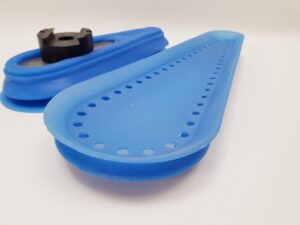Due to the unusual length of the product as well as its delicate structure, the shape of the suction cup imitates the shape of the salmon side in the form of an elongated triangle with rounded edges.